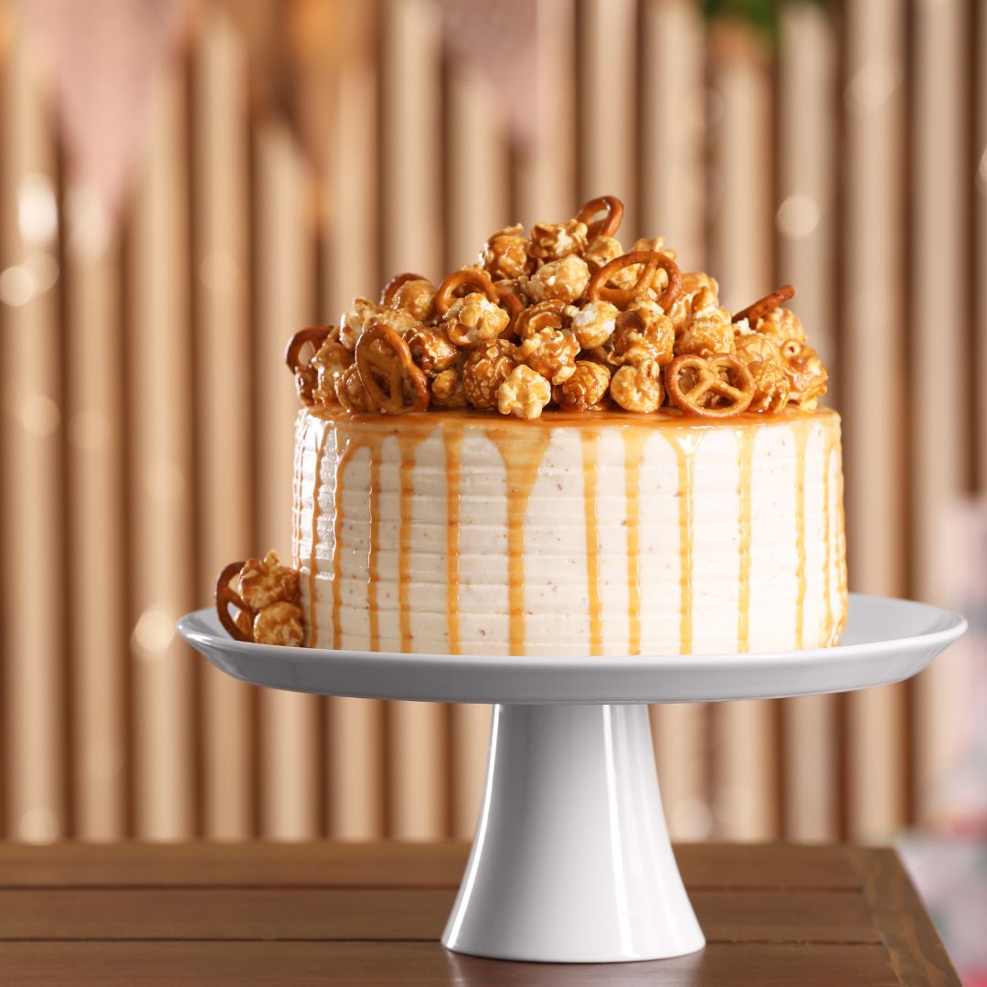 PopcornTorte mit Karamell und Salzbrezeln (vegan)